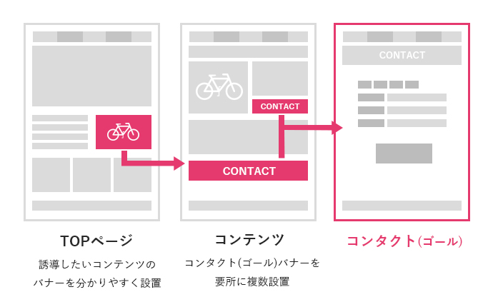 ユーザーを目的のページに誘導出来ているか?心地よく読み進められているか?などホームページでアクションを起こしてもらう為には、目的のページへ誘導する為の導線が鍵となります。考えられた導線が張ってあるサイトとそうでないサイトでは、ユーザーのアクションによって得られる成果が大きく変わります。